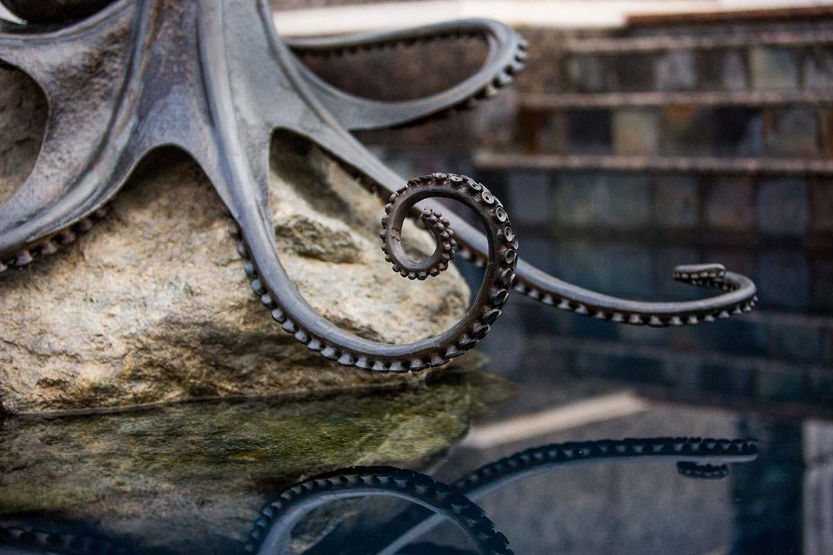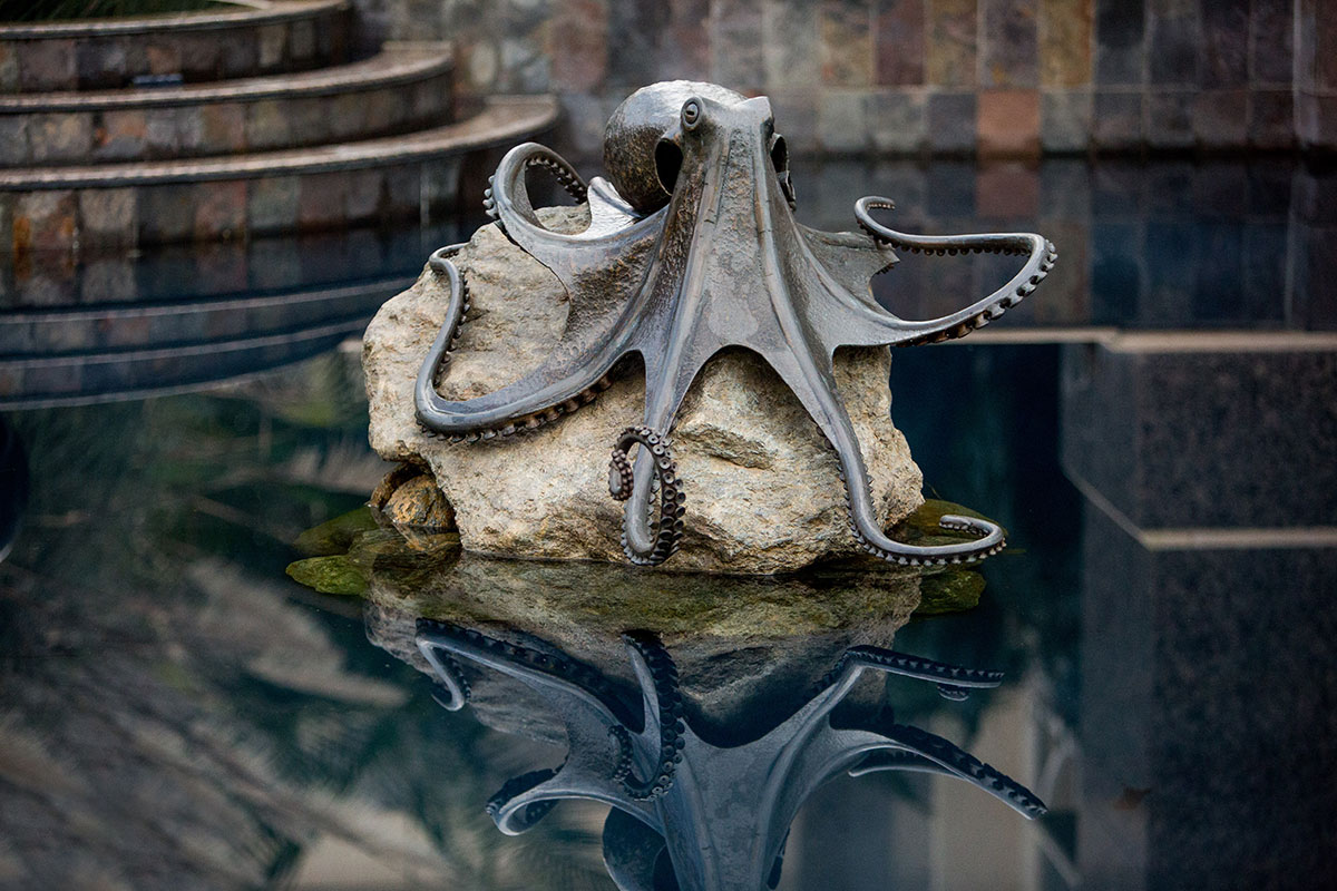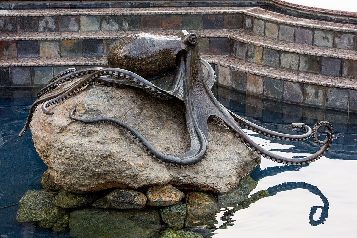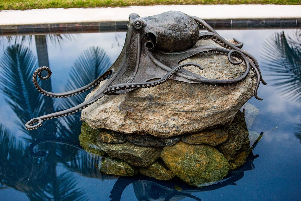 Drei’s Reach stands as the prominent feature of a pool at a private residence. It was forged, hammered, and welded to flow with the contours of the rock ase and pool. Commissioned to honor a beloved family member, with its tentacles stretching out in many directions, the octopus represents the far-reaching, positive impact its namesake had on the world around him.