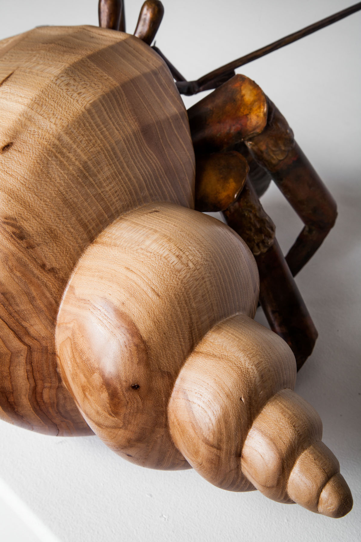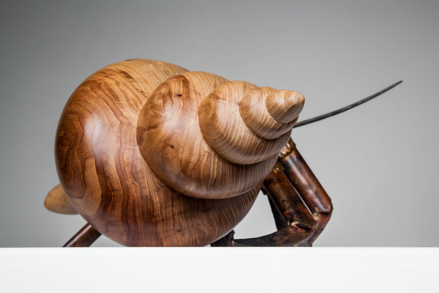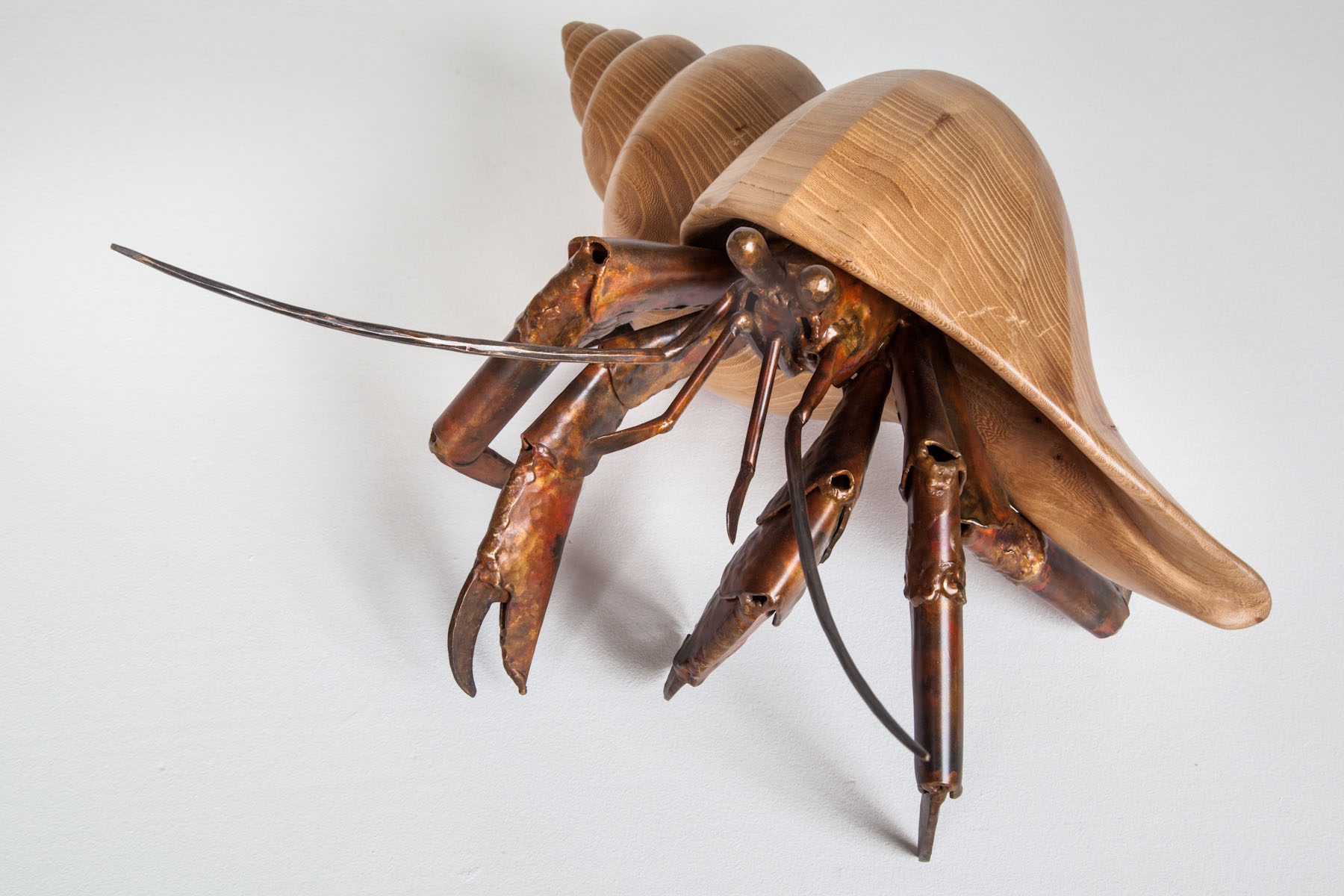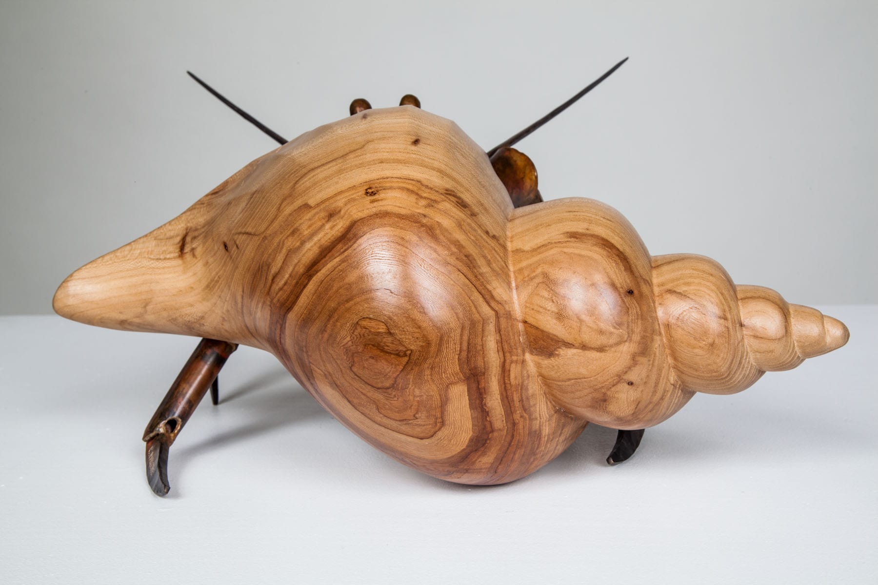 A hermit crab is always on the lookout for its next shell, its new and even better home. As the two vagabonds of Finders Keepers illustrate, the entire line of hermit crab sculptures features an assortment of elegant shell shapes in a variety of different woods. Every piece features a welded bronze hermit crab in a stunning wood shell.